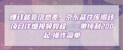赚钱就靠信息差,京东备件库搬砖项目详细视频教程,一单纯利200,操作简单