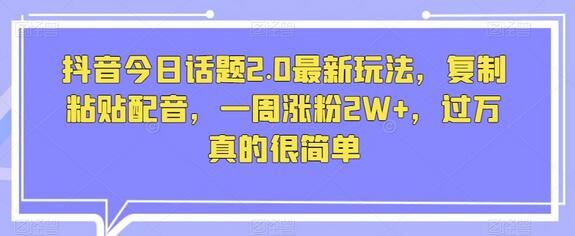 抖音今日话题2.0最新玩法,复制粘贴配音,一周涨粉2W+,过万真的很简单