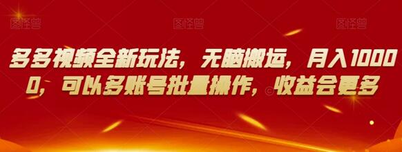 多多视频全新玩法,无脑搬运,月入10000,可以多账号批量操作,收益会更多