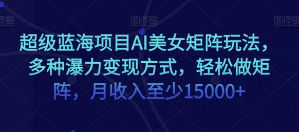 超级蓝海项目AI美女矩阵玩法,多种瀑力变现方式,轻松做矩阵,月收入至少15000+