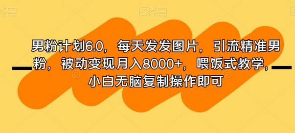 男粉计划6.0,每天发发图片,引流精准男粉,被动变现月入8000+,喂饭式教学,小白无脑复制操作即可
