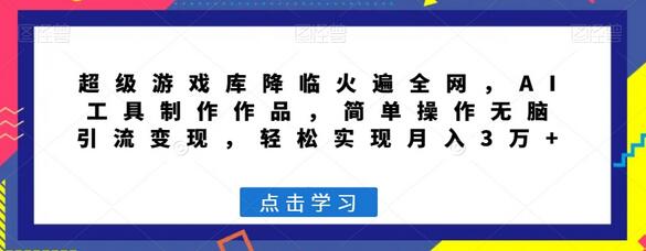 超级游戏库降临火遍全网,AI工具制作作品,简单操作无脑引流变现,轻松实现月入3万+