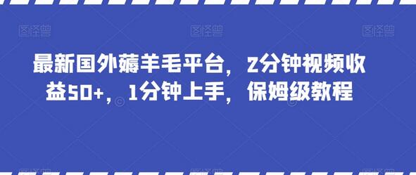 最新国外薅羊毛平台,2分钟视频收益50+,1分钟上手,保姆级教程
