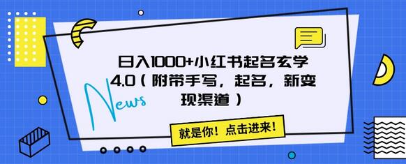 日入1000+小红书起名玄学4.0(附带手写,起名,新变现渠道)