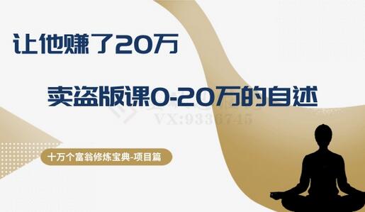 十万个富翁修炼宝典之9.让他赚了20万,卖盗版课0-20万的自述