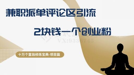 十万个富翁修炼宝典之11.兼职派单评论区引流,2块钱一个创业粉