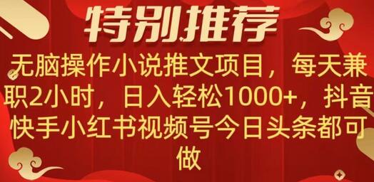 无脑操作【小说推文项目】,兼职每天两小时,日入轻松1000+,抖音快手视频号小红湖中视频都可做