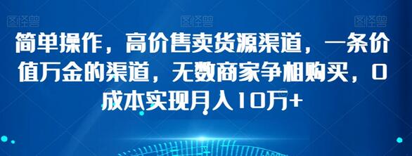 这些年来电商平台火爆,无数人涌入这个平台售卖商品,但是大多数人都没有好的货源渠道,导致产品质量低下,售后服务难以保障,售出产品以后,面对顾客的问题,难以解决,无数的商家为此苦不堪言。因此一条高质量,高售后保障的货源渠道就成为所有商家竞相购买的宝藏。咱们就可以通过向商家出售渠道做到无本万利了。