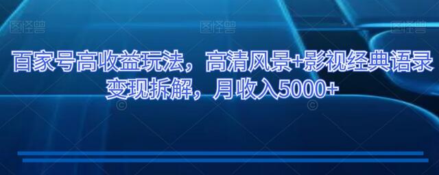 百家号高收益玩法,高清风景+影视经典语录变现拆解,月收入5000+