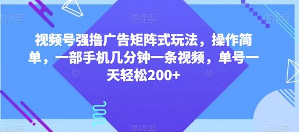 视频号强撸广告矩阵式玩法,操作简单,一部手机几分钟一条视频,单号一天轻松200+