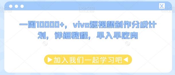 一周10000+,vivo短视频创作分成计划,详细教程,早入早吃肉