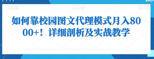 如何靠校园图文代理模式月入8000+!详细剖析及实战教学