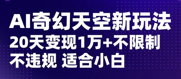 AI奇幻天空,20天变现五位数玩法,不限制不违规不封号玩法,适合小白操作