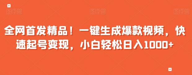 admin 中创网 2023-12-27 全网首发精品!一键生成爆款视频,快速起号变现,小白轻松日入1000+ 项目介绍: 今天分享的项目是一键生成原创爆款视频,快速起号变现,操作简单,用户一刷就停不下来 本站声明: 1、本内容转载于网络,版权归原作者所有! 2、本站仅提供信息存储空间服务,不拥有所有权,不承担相关法律责任! 3、本内容若侵犯到你的版权利益,请联系我们,会尽快给予删除处理! 4、本站项目均需要自学,无指导;项目如有涉及付费环节,请自行判断,本站不负责项目的真伪!