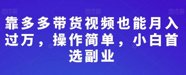靠多多带货视频也能月入过万,操作简单,小白首选副业
