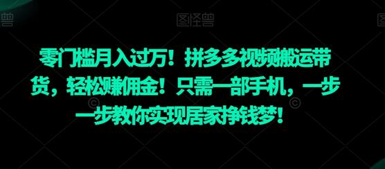 零门槛月入过万!拼多多视频搬运带货,轻松赚佣金!只需一部手机,一步一步教你实现居家挣钱梦!