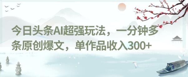admin 中创网 2023-12-31 今日头条AI超强玩法,一分钟多条原创爆文,单作品收入300+ 这个项目是用AI把其他平台的视频文案变成原创的,发布到头条,非常低门槛,手机就行。收益是中视频的两倍,爆一条就能有不错收益,制作方法简单 本站声明: 1、本内容转载于网络,版权归原作者所有! 2、本站仅提供信息存储空间服务,不拥有所有权,不承担相关法律责任! 3、本内容若侵犯到你的版权利益,请联系我们,会尽快给予删除处理! 4、本站项目均需要自学,无指导;项目如有涉及付费环节,请自行判断,本站不负责项目的真伪!