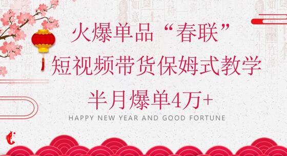 admin 中创网 2023-12-31 蓝海风口项目,火爆单品“春联”短视频带货保姆式教学,半月爆单4万+ 今天给大家分享的是年关将近的流量爆品春联短视频带货玩法!目前入局的人还不多!制作也非常简单!特别适合小白入门短视频带货!本节课会教大家起号到如何选品,爆单,和制作!让小白也能做到轻松爆单! 本站声明: 1、本内容转载于网络,版权归原作者所有! 2、本站仅提供信息存储空间服务,不拥有所有权,不承担相关法律责任! 3、本内容若侵犯到你的版权利益,请联系我们,会尽快给予删除处理! 4、本站项目均需要自学,无指导;项目如有涉及付费环节,请自行判断,本站不负责项目的真伪!