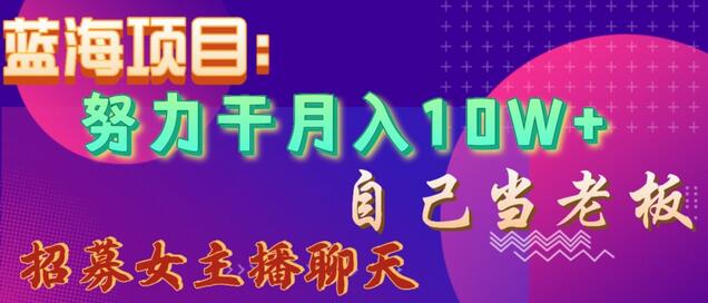 蓝海项目,努力干月入10W+,自己当老板,女主播招聘