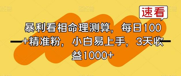 本次给大家带来的项目是命理测算,每日暴力引流100+,一般我们看来命理的测算属于国学项目,但我们是国学项目更加细致垂直的领域,主要对于我们普通人来讲,事情的测算或者一些看相方面都是普通人所需求的,并且属于垂直领域,更好能够去出单。