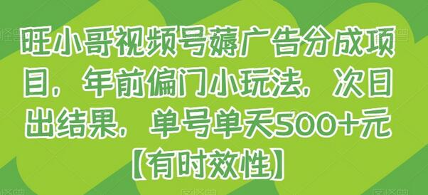 旺小哥视频号薅广告分成项目,年前偏门小玩法,次日出结果,单号单天500+元【有时效性】