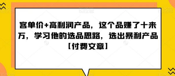 admin 中创网 2024-01-09 客单价+高利润产品,这个品赚了十来万,学习他的选品思路,选出暴利产品【付费文章】 前言 超高价 自己做过的产品, 一个单品赚了十来万! 根据产品, 分析清楚这样的选品思路, 你会发现像这样的还算暴利的产品非常多。 本站声明: 1、本内容转载于网络,版权归原作者所有! 2、本站仅提供信息存储空间服务,不拥有所有权,不承担相关法律责任! 3、本内容若侵犯到你的版权利益,请联系我们,会尽快给予删除处理! 4、本站项目均需要自学,无指导;项目如有涉及付费环节,请自行判断,本站不负责项目的真伪!