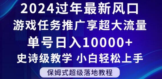 2024年过年新风口,游戏任务推广,享超大流量,单号日入10000+,小白轻松上手