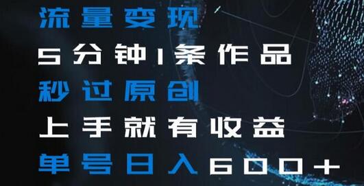 流量变现5分钟1条作品秒过原创上手就有收益单号日入600+