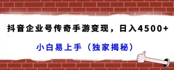 抖音企业号传奇手游变现,日入4500+,小白易上手(独家揭秘)