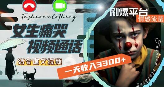 一天收入3300+,用女生痛哭视频通话结合虐文拉新,刷爆平台情感流量