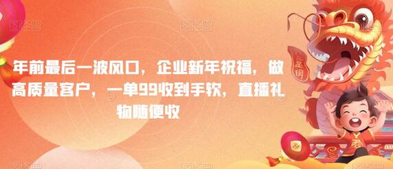 年前最挣钱的一波风口,只有一个多月。企业祝福视频定制。很多企业年底要给客户发祝福短信,以前那种群发的文字祝福太垃圾了。都是老板。能给客户一个好点的印象对明年的工作开展也比较好。我们就抓这个风口。一个多月一天干个2000轻轻松松