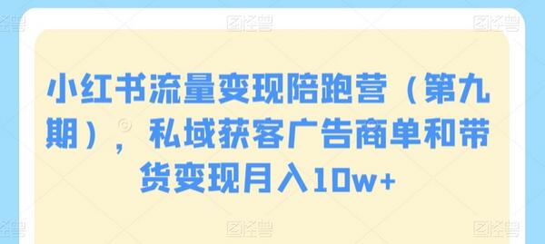 小红书流量变现陪跑营(第九期),私域获客广告商单和带货变现月入10w+