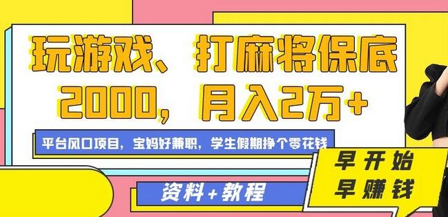 玩游戏、打麻将保底2000,月入2万+,平台风口项目