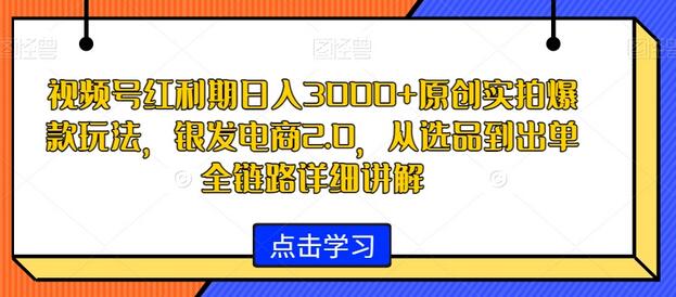 视频号红利期日入3000+原创实拍爆款玩法,银发电商2.0,从选品到出单全链路详细讲解