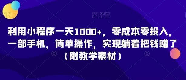 今天给大家带来的项目是《利用小程序赚钱玩法》。很多人会好奇,这个小程序能有多赚钱?可以这样说,我刚开始做的时候一天赚个百十来块钱没什么问题,用心经营一天1000+,实现躺着把钱赚了。