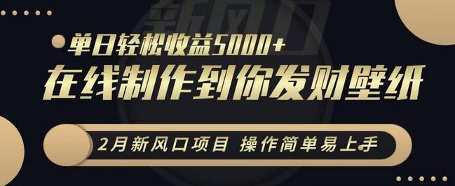 2月新风口项目,操作简单易上手,在线制作到你发财手机壁纸,单日轻松收益5000+