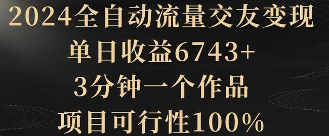 2024全自动流量交友变现,单日收益6743+,3分钟一个作品,项目可行性100%