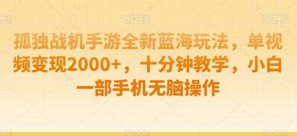 今天给带来的项目是“孤独战机手游全新蓝海玩法,单视频变现2000+,十分钟教学,小白一部手机无脑操作,附带教程和资料,干就完了!”这是一种我实操的玩法,也是大佬的玩法,我们需要用到提供的第三方平台去放单变现,项目合法合规,直接小白无脑操作,不需要购买配音软件和费力剪辑视频,暴力变现出单!下面是教程和资料!