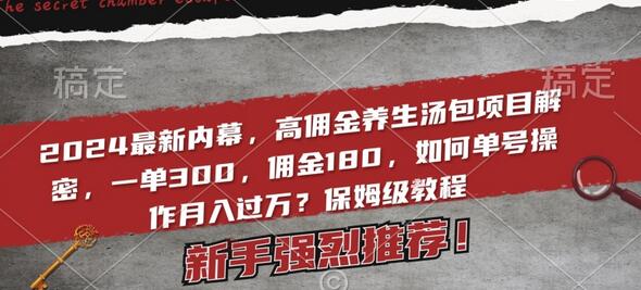 2024最新内幕,高佣金养生汤包项目解密,一单300,佣金180,如何单号操作月入过万?保姆级教程