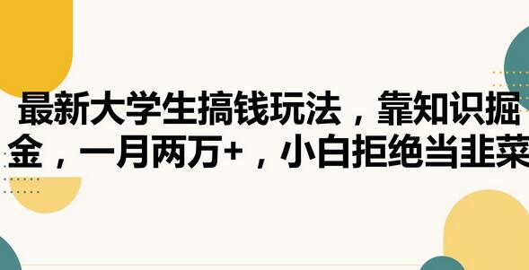 最新大学生搞钱玩法,靠知识掘金,一月两万+,小白拒绝当韭菜