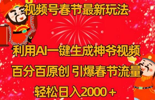 视频号春节最新玩法,利用AI一键生成财神爷视频,百分百原创,引爆春节流量,轻松日入2000+