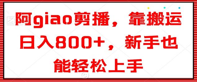 阿giao剪播,靠搬运日入800+,新手也能轻松上手