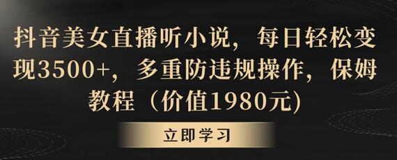 抖音美女直播听小说,每日轻松变现3500+,多重防违规操作,保姆教程(价值1980元)