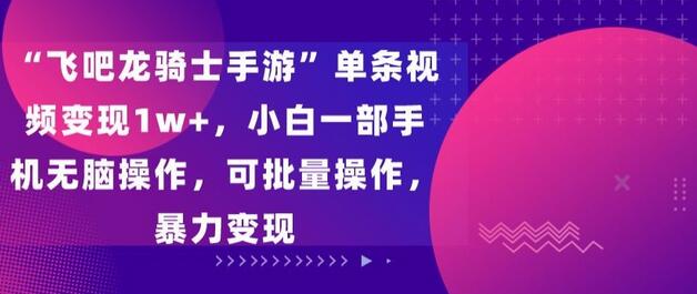 “飞吧龙骑士手游”单条视频变现1w+,小白一部手机无脑操作,可批量操作,暴力变现