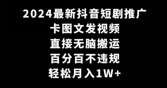 2024最新抖音短剧推广,卡图文发视频,直接无脑搬,百分百不违规,轻松月入1W+