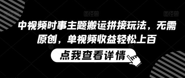 中视频时事主题搬运拼接玩法,无需原创,单视频收益轻松上百