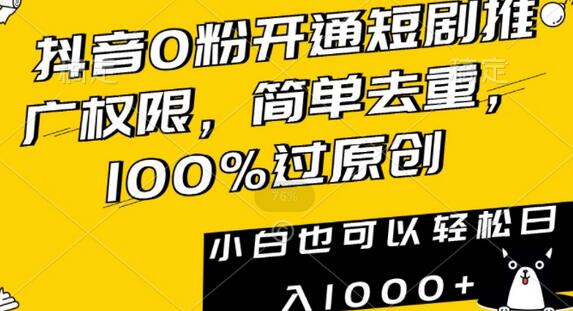 抖音0粉开通短剧推广权限,简单去重,100%过原创,小白也可以轻松日入1000+