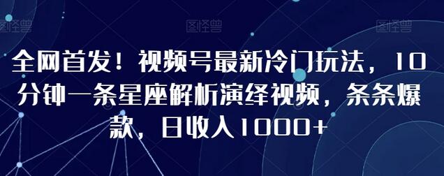 全网首发!视频号最新冷门玩法,10分钟一条星座解析演绎视频,条条爆款,日收入1000+