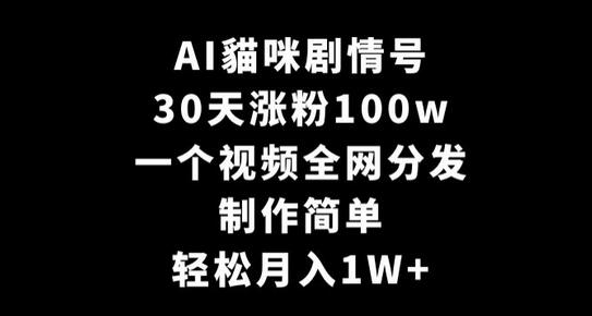 AI貓咪剧情号,30天涨粉100w,制作简单,一个视频全网分发,轻松月入1W+