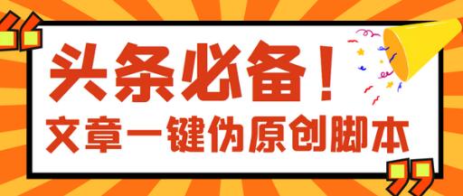 【头条必备】最新文章自动伪原创脚本,百分百过原创【脚本+详细教程】